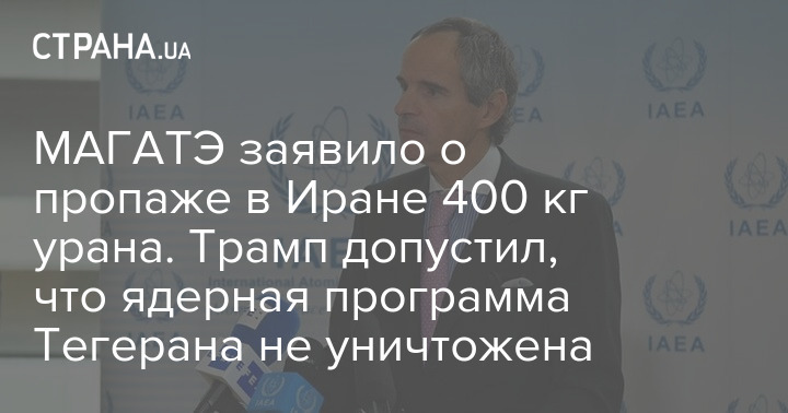 МАГАТЕ заявило про зникнення в Ірані 400 кг урану. Трамп припустив, що ядерна програма Тегерана не знищена
