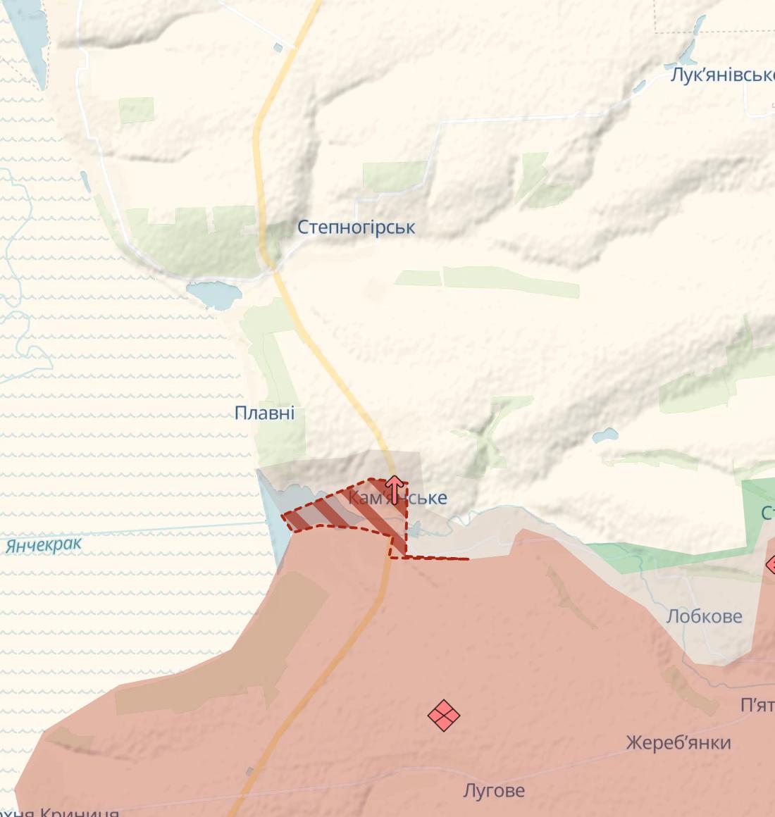 Раніше у Силах оборони півдня України повідомляли, що російські війська на Запорізькому напрямку намагаються захопити плацдарм у районі Кам'янського. Цей населений пункт розташований на висоті, що панує, вздовж автодороги Сімферополь–Харків.
