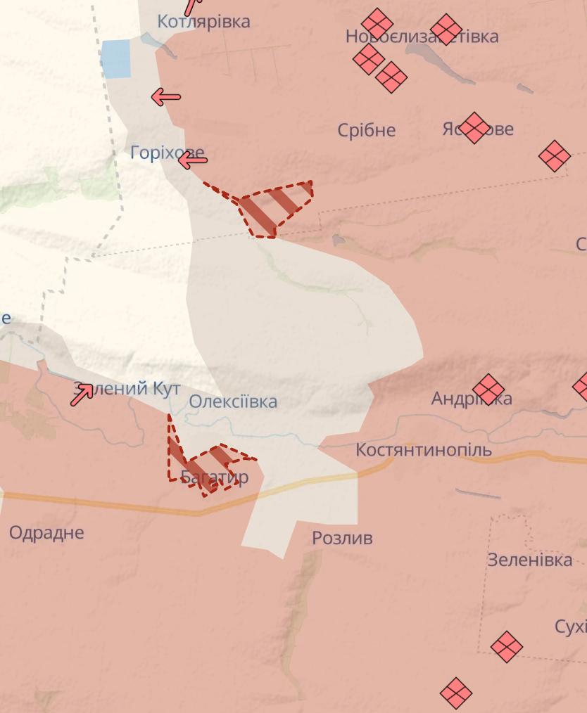 Також РФ просунулась у Богатирі і на північ, біля Горіхового.