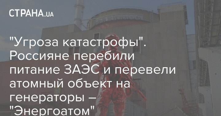 "Загроза катастрофи". Росіяни перебили живлення ЗАЕС та перевели атомний об'єкт на генератори – "Енергоатом"