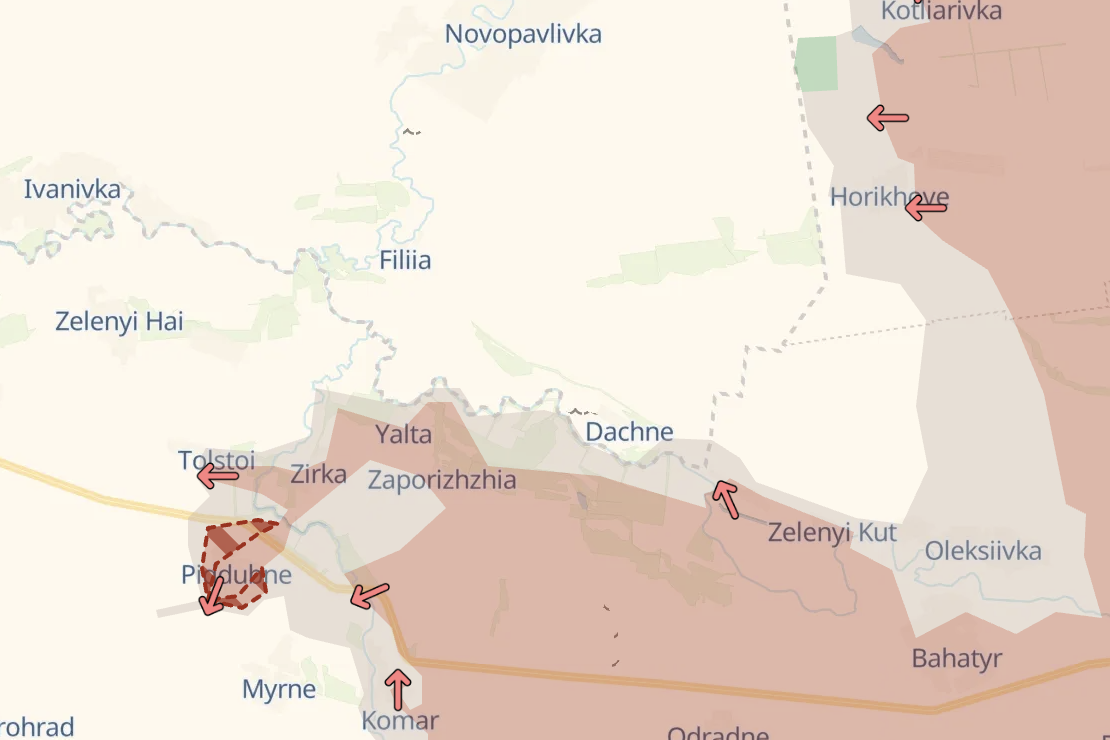 Deep State пише, що біля меж Дніпропетровської області росіяни захопили село Піддубне, а південніше просунулися біля Рівного.