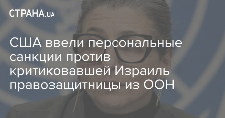 США ввели персональні санкції проти правозахисниці з ООН, яка критикувала Ізраїль