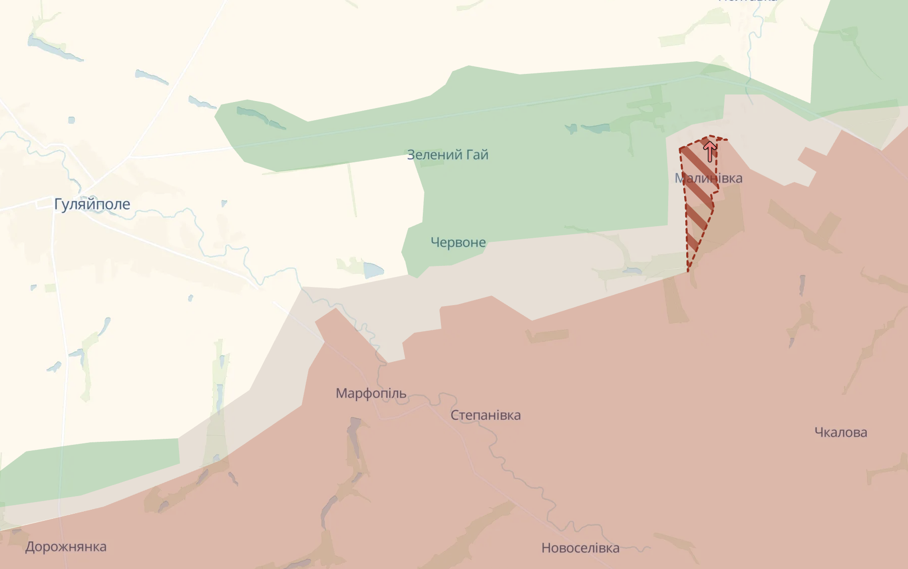 Також, за даними Deep State, РФ знову просунулась у Малинівці Запорізької області (напрямок Гуляйполя). Міноборони РФ сьогодні заявило про захоплення цього села.