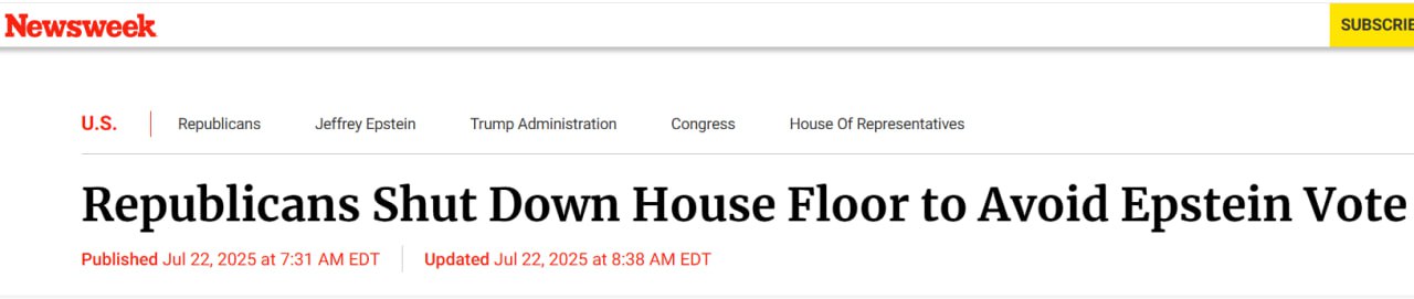 Вчора Джонсон заявив, що не планує проводити голосування щодо будь-яких заходів, пов'язаних зі справою Джеффрі Епштейна, в останній тиждень роботи палати представників перед серпневими канікулами, незважаючи на сильний тиск з боку деяких республіканців з вимогою відкрито висловитися з цього питання.