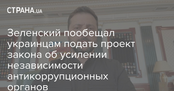 Зеленський пообіцяв українцям подання проекту закону про посилення незалежності антикорупційних органів