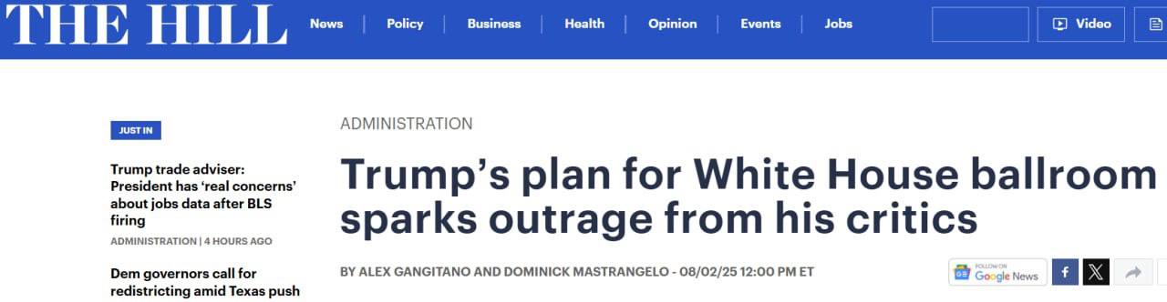 У США критикують плани Трампа з будівництва бального залу в Білому домі за 200 млн доларів - The Hill