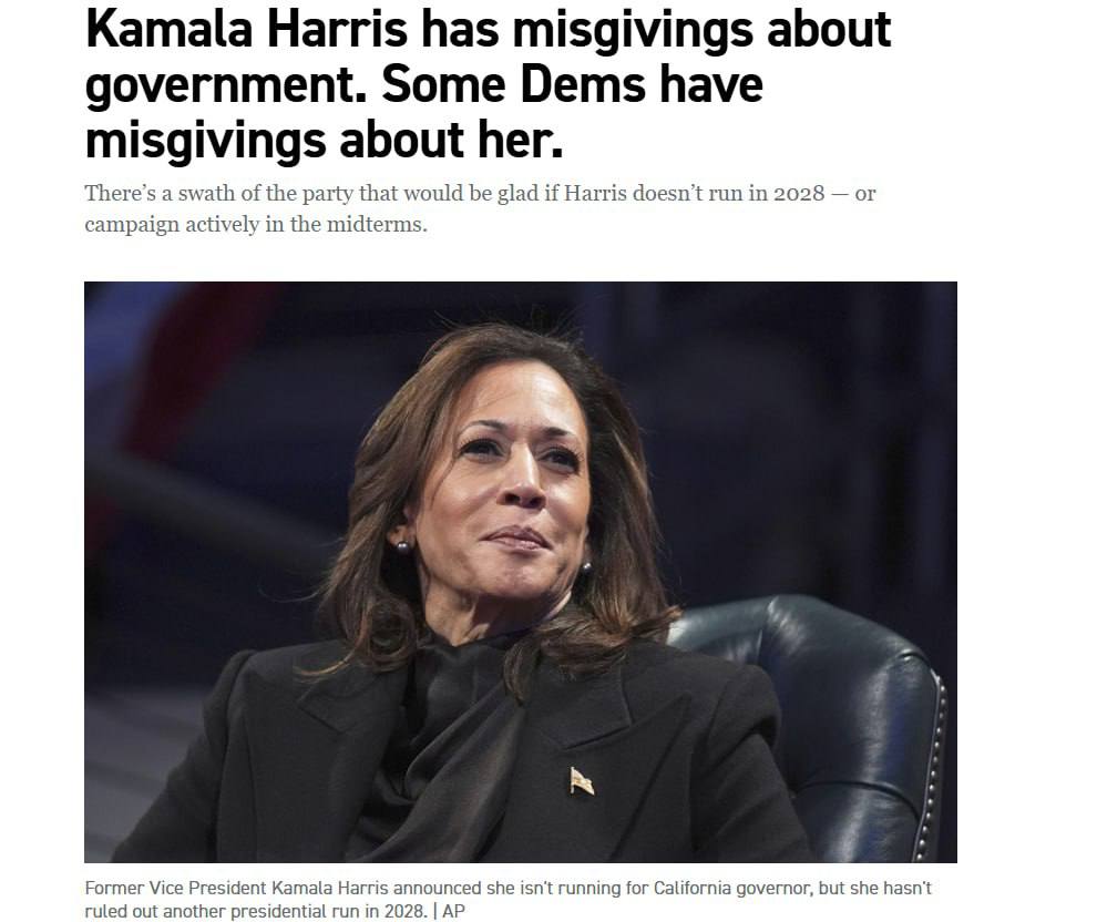 "Побоювання криються в її поразці 2024 року. Цей багаж все ще тягнеться не лише за Джо Байденом, а й за його віцепрезидентом", - пише видання.