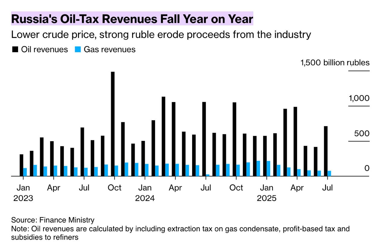 Падіння цін та зміцнення рубля. У липні нафтові доходи Росії впали на третину - Bloomberg