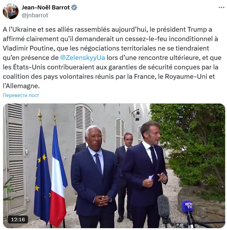 Про це повідомив голова МЗС Франції Жан-Ноель Барро у соцмережі Х.