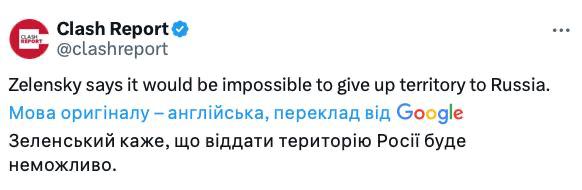 "Зеленський каже, що віддати територію Росії буде неможливо", - йдеться у повідомленні.