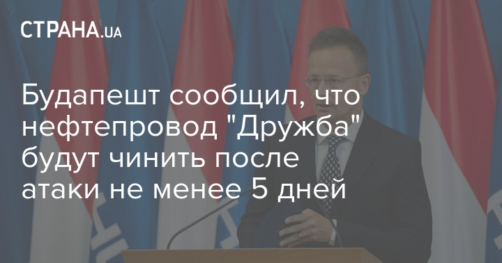 Будапешт повідомив, що нафтопровід "Дружба" лагодитимуть після атаки не менше 5 днів.