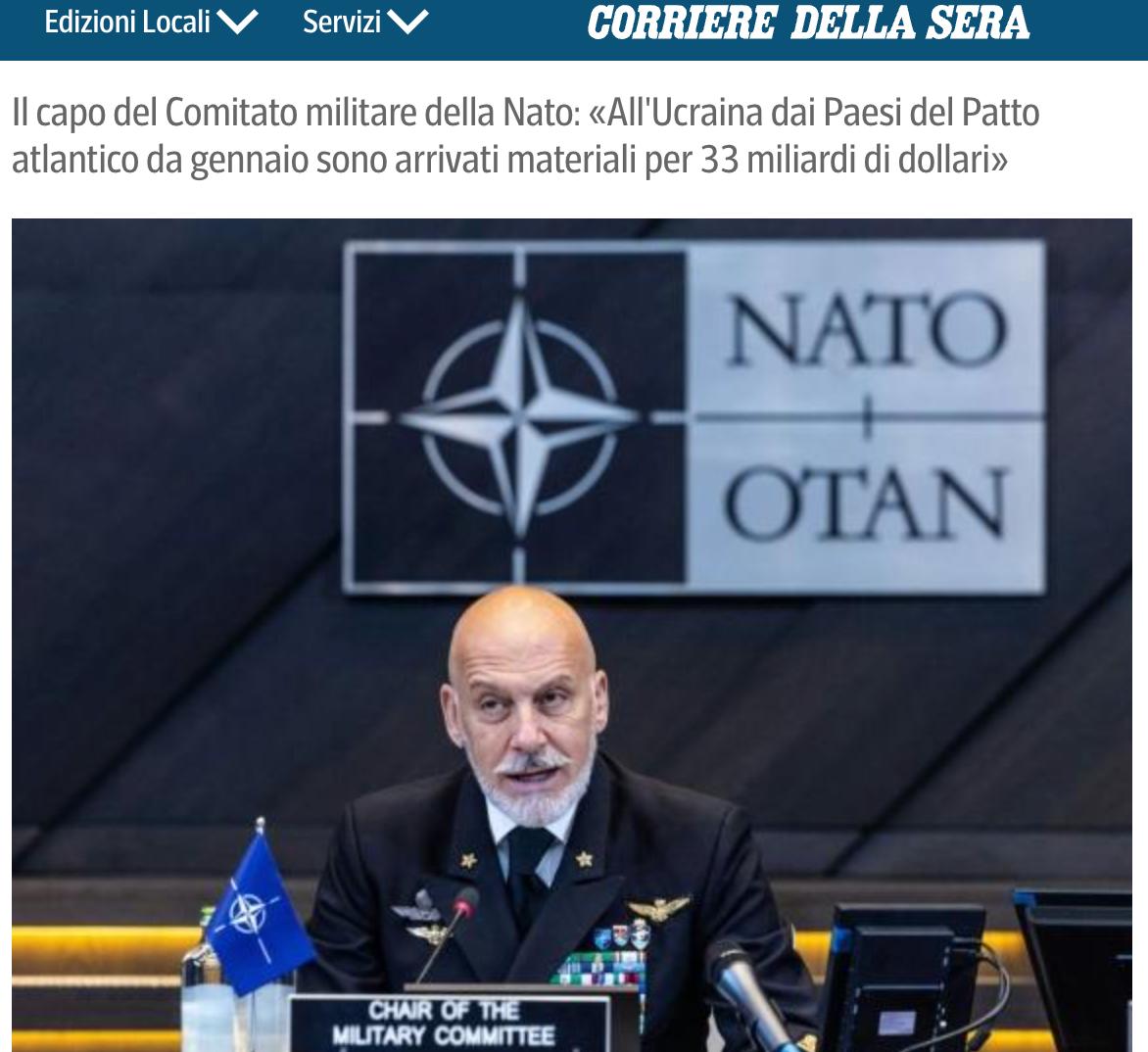 12:53 Цього року військова допомога Україні не збільшиться і становитиме близько 50 мільярдів доларів. Такі розрахунки навів голова військового комітету НАТО Джузеппе Каво Драґоне.