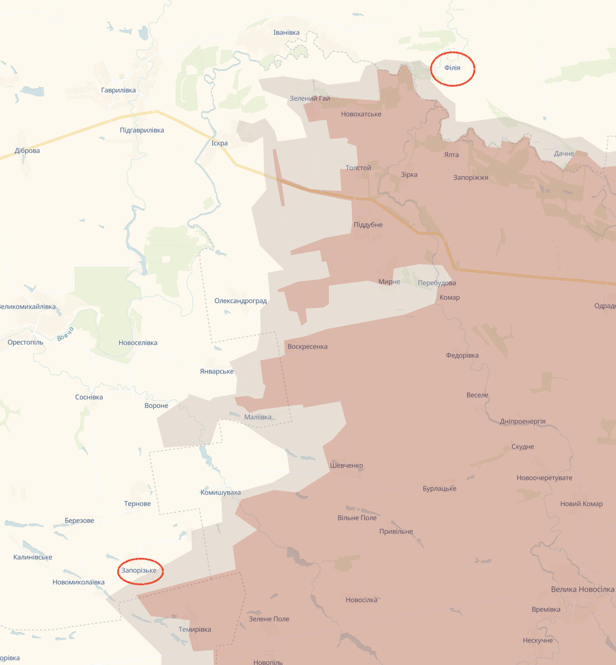Україна цього не підтверджувала на картах Deep State населені пункти під контролем ЗСУ, хоча біля них тривають бої. При цьому росіяни вже опублікували відео із прапором із Запорізького та Філії.