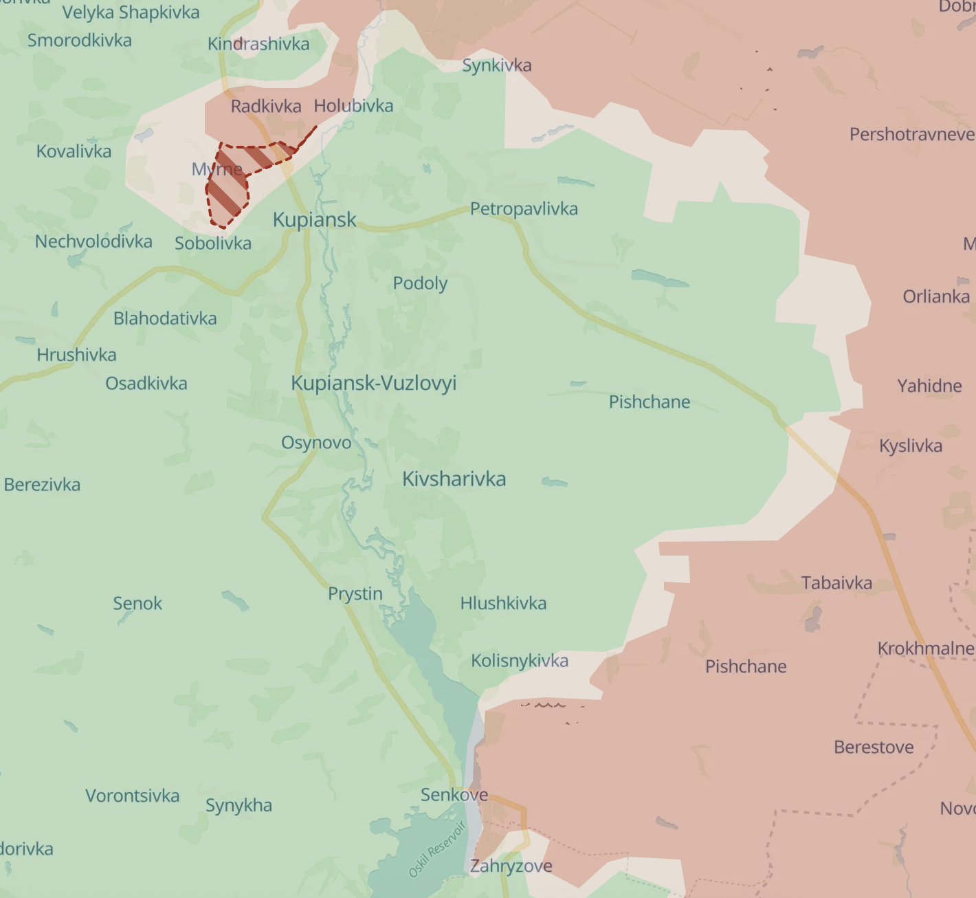 При цьому армія РФ суттєво просунулась на захід від Куп'янська, повідомляє Deep State. Таким чином росіяни підійшли на два кілометри до основної траси постачання міста – з Харкова.