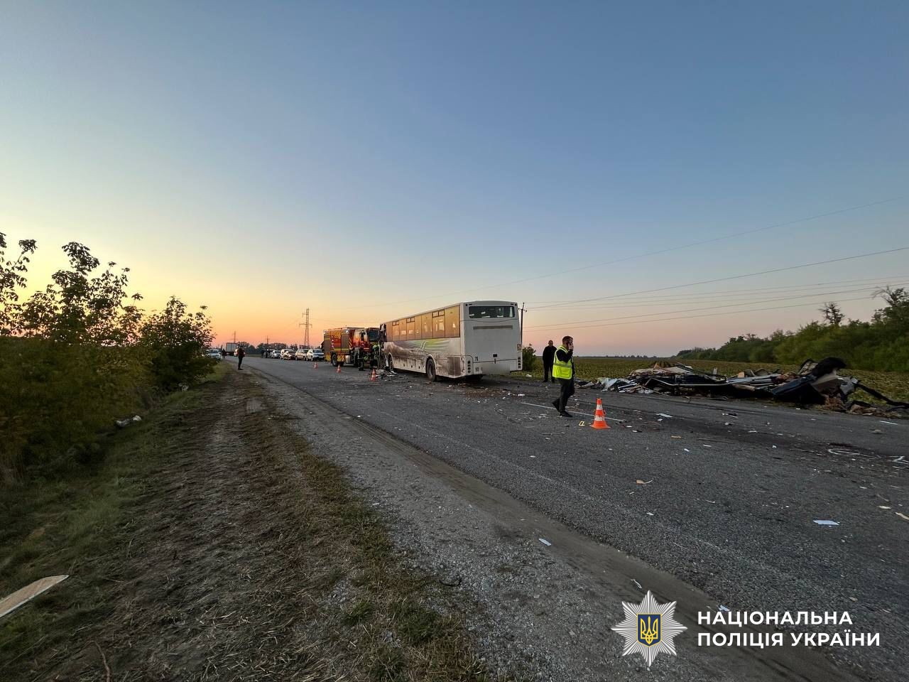 Внаслідок пригоди водій автобуса МAN та п'ять пасажирів мікроавтобуса Mercedes-Benz Sprinter, серед яких дитина, загинули на місці. Ще шістьох пасажирів, серед яких дитина, отримали травми, вони доставлені до медичного закладу.