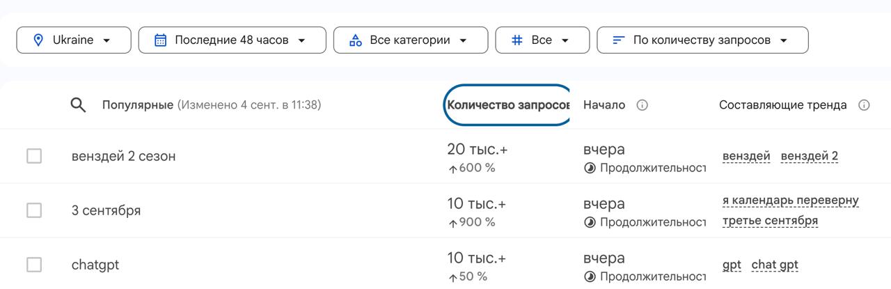 Запити "3 вересня" Шуфутинського та "другий сезон "Уенсдей" стали топовими в трендах Google по Україні
