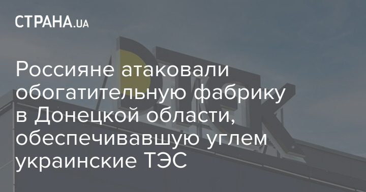 Росіяни атакували збагачувальну фабрику в Донецькій області, яка забезпечувала вугіллям українські ТЕС
