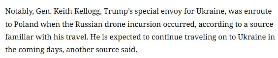 Тим часом телеканал CNN повідомив, що спецпосланець президента США Україною Кіт Келлог прямував до Польщі, коли дрони опинилися в повітряному просторі країни.
