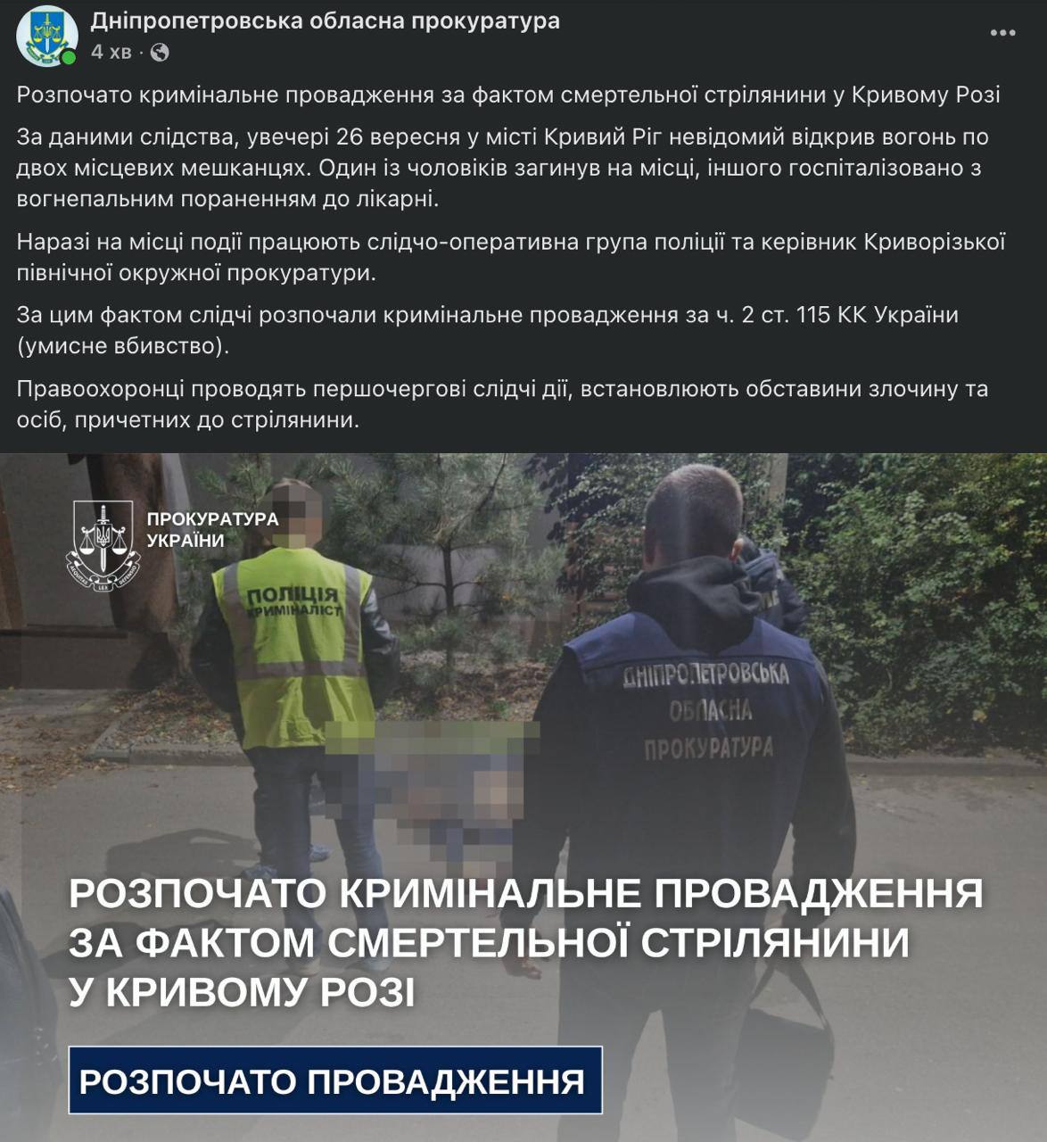 Прокуратура розпочала кримінальне провадження за фактом вбивства.