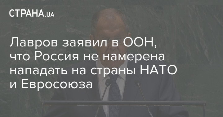 Лавров заявив в ООН, що Росія не має наміру нападати на країни НАТО та Євросоюзу