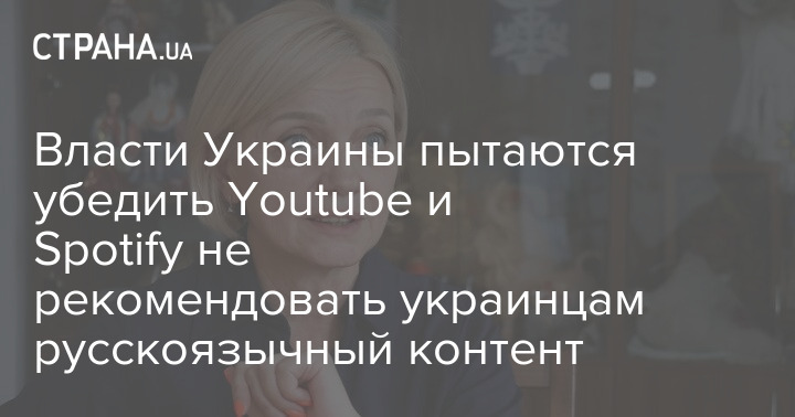 Влада України намагається домовитися з відеохостингом Youtube та музичним стрімінговим сервісом Spotify, щоб ті не рекомендували українським користувачам російськомовний контент.