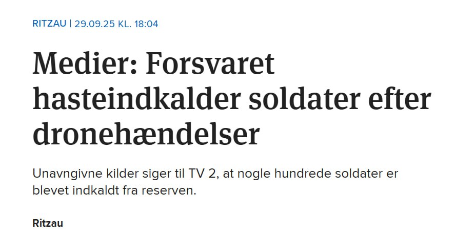 "Ряд данських солдатів були терміново призвані на службу в Данії в неділю. Порядок денний видається з метою підготовки до можливого розгортання на данській землі", — повідомляється на сайті TV2.