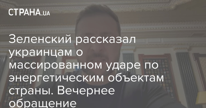Зеленський розповів українцям про масований удар по енергетичних об'єктах країни. Вечірнє звернення