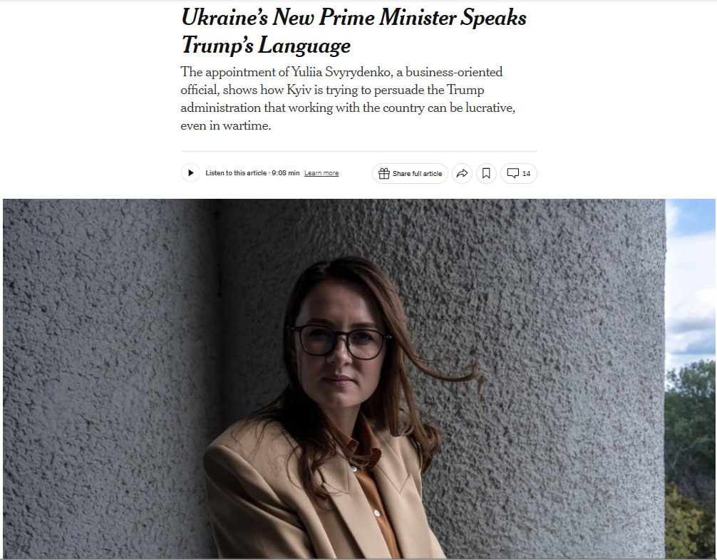 "Наприкінці лютого під час відеодзвінка міністр фінансів Скотт Бессент крикнув пані Свириденко, що має шість хвилин, щоб прийняти угоду, інакше переговори будуть закінчені", - пише газета.