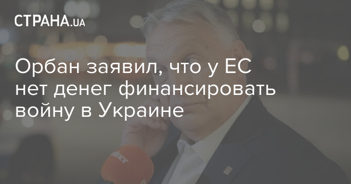 Прем'єр-міністр Угорщини Віктор Орбан заявив, що Європейський Союз не має грошей, щоб фінансувати війну в Україні.