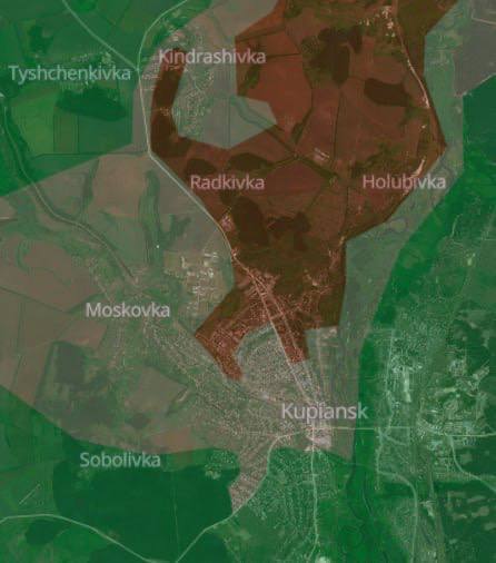 Крім того, серйозно збільшилася "сіра зона" у Куп'янську. Поза сірою зоною під контролем ЗСУ, судячи з карти, лише південні околиці міста.