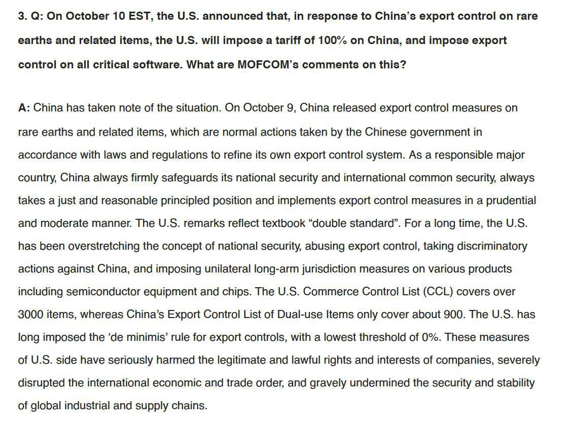 "США довгий час розширювали поняття національної безпеки, зловживали експортним контролем, вживали дискримінаційних заходів проти Китаю та вводили односторонні заходи юрисдикції «довгої руки» щодо різних товарів, включаючи напівпровідникове обладнання та мікросхеми", - йдеться у заяві.