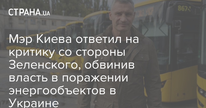 Мер Києва Віталій Кличко відповів на критику президента України Володимира Зеленського на свою адресу щодо недостатнього захисту об'єктів енергетики, фактично звинувативши у цьому центральну владу.