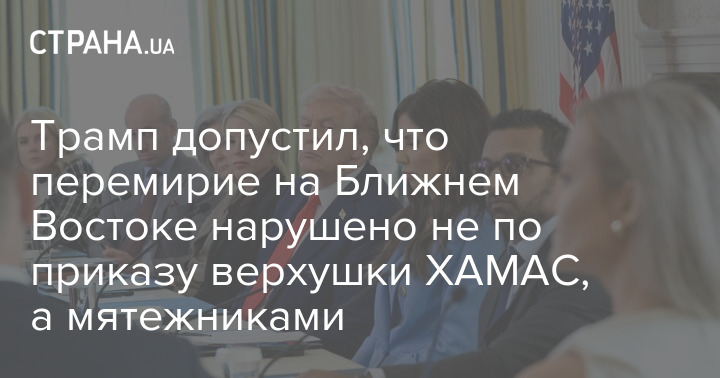 Трамп припустив, що перемир'я на Близькому Сході порушено не за наказом верхівки ХАМАС, а бунтівниками