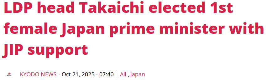 Новим прем'єр-міністром Японії обрано лідера Ліберально-демократичної партії Санае Такаїті - вона стала першою жінкою в історії країни, яка очолила уряд.