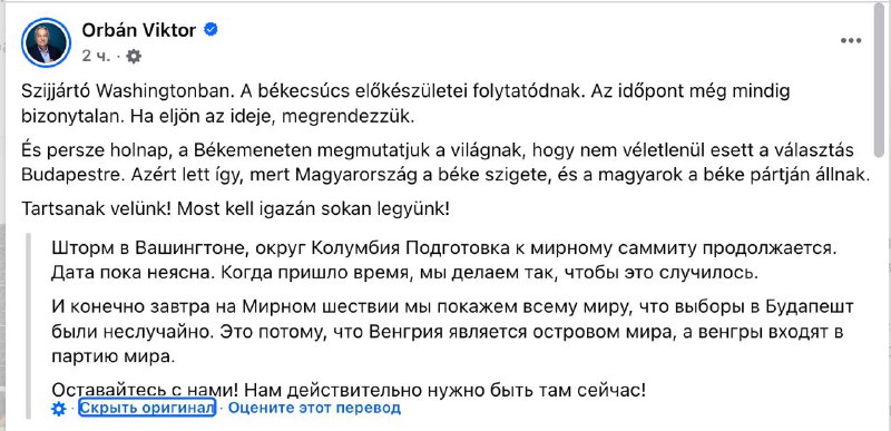 Орбан написав про підготовку саміту у Будапешті. Фото: facebook.com/orbanviktor
