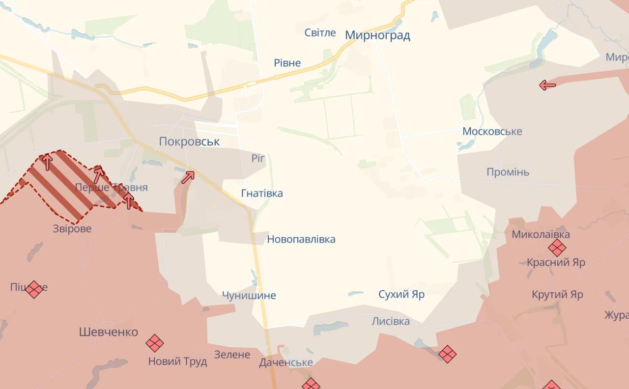 Армія РФ просунулась на південь від Покровська, повідомляє військовий паблік Deep State.