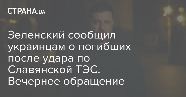 "Зараз кілька годин тому був удар по Слов'янській ТЕС - удар російських бомб. На жаль, дві людини загинули. Мої співчуття. Є поранені. І це виключно терор. Нормальні так не воюють, і на таку російську війну має бути належна реакція світу", - заявив президент.