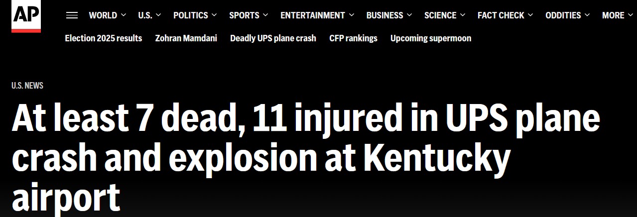 У США розбився вантажний літак логістичної компанії UPS. Він звалився невдовзі після зльоту з міжнародного аеропорту в Луїсвіллі, штат Кентуккі. Є загиблі та поранені.