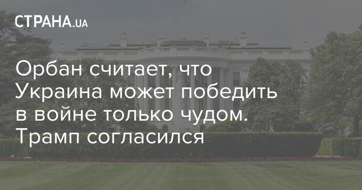 Прем'єр-міністр Угорщини Віктор Орбан під час зустрічі з Дональдом Трампом у Білому домі заявив, що перемога України у війні проти Росії була б "дивом".