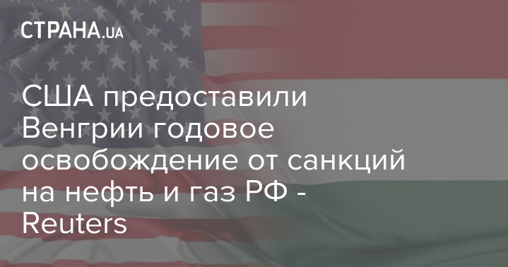США надали Угорщині річне звільнення від санкцій на нафту та газ РФ - Reuters