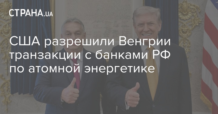 "Вашингтон видав генеральну ліцензію, що дозволяє певні транзакції в рамках проекту цивільної атомної електростанції Угорщини "Пакш-2". Ліцензія дозволить здійснювати грошові перекази за участю низки російських банків, включаючи "Газпромбанк", "Банк ВТБ" та Центральний банк Росії", - цитує і