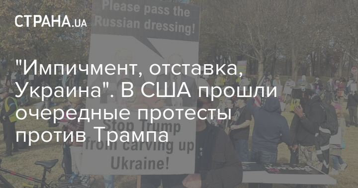 На плакатах протестувальників є написи "Трамп щойно продав Україну", "Влаштуйте імпічмент їхнім дупам" та "хто такий Бубба?" (натяк на нібито сексуальні зв'язки Трампа та Білла Клінтона, тему яких активно розкручують противники президента США).