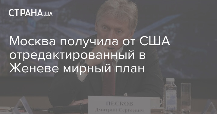 США передали Росії параметри узгодженого з українською делегацією у Женеві мирного плану, їх обговорять наступного тижня.