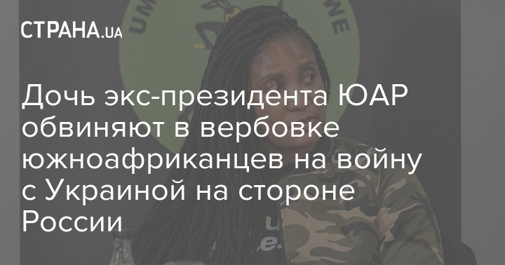 Дочка колишнього президента Південно-Африканської Республіки (ПАР) Дудузіле Зума-Самбудла звинувачується у вербуванні мешканців своєї країни для війни в Україні на боці РФ.