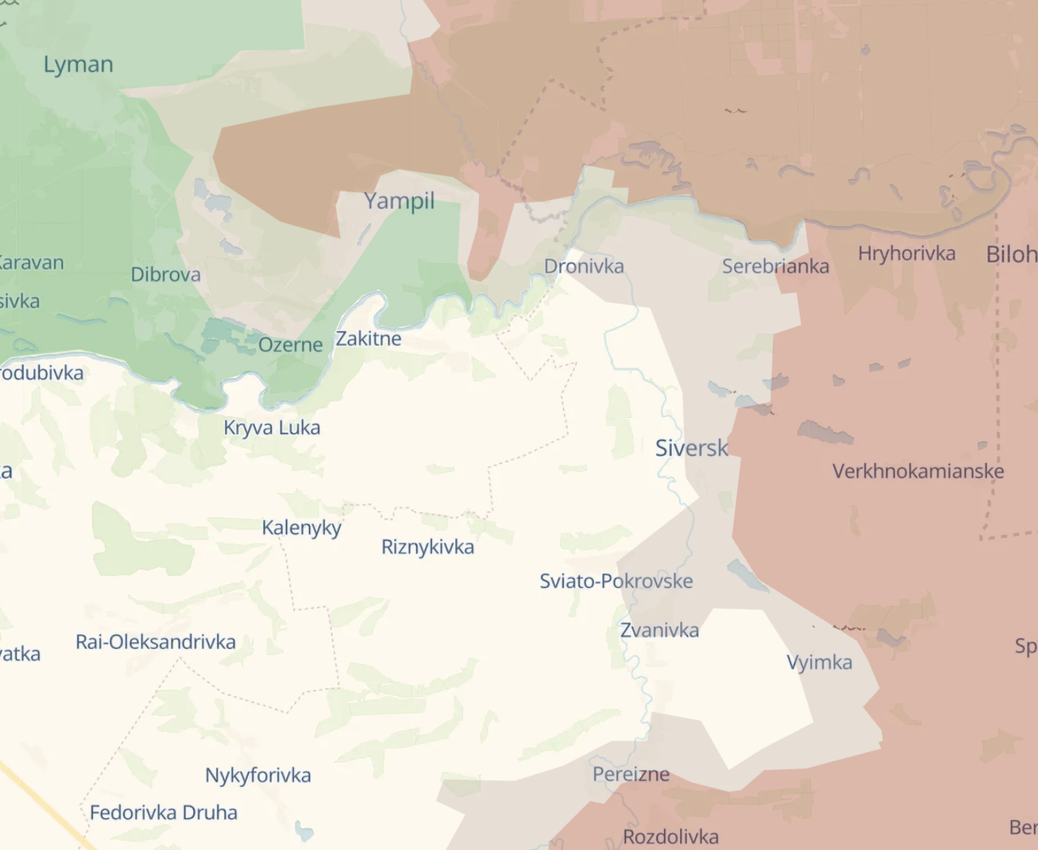 Російські війська просувалися під Сіверськом, а також у районі Ямполя. Зараз на південь від Сіверська у районі Виїмки формується "мішок".