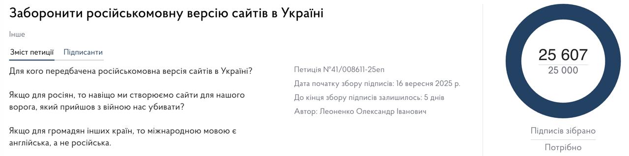 Таким чином, вона відповіла на петицію про заборону російськомовних версій сайтів на сайті Кабінету міністрів, яка вчора набрала необхідні 25 тисяч голосів.