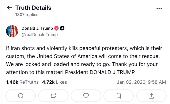 У відповідь на ці події Трамп пригрозив Ірану "діями" у разі вбивств мирних протестувальників.