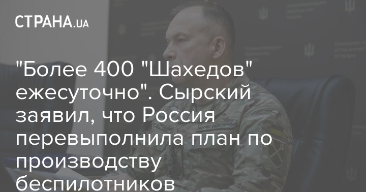 "Понад 400 "Шахедів" щодобово". Сирський заявив, що Росія перевиконала план з виробництва безпілотників