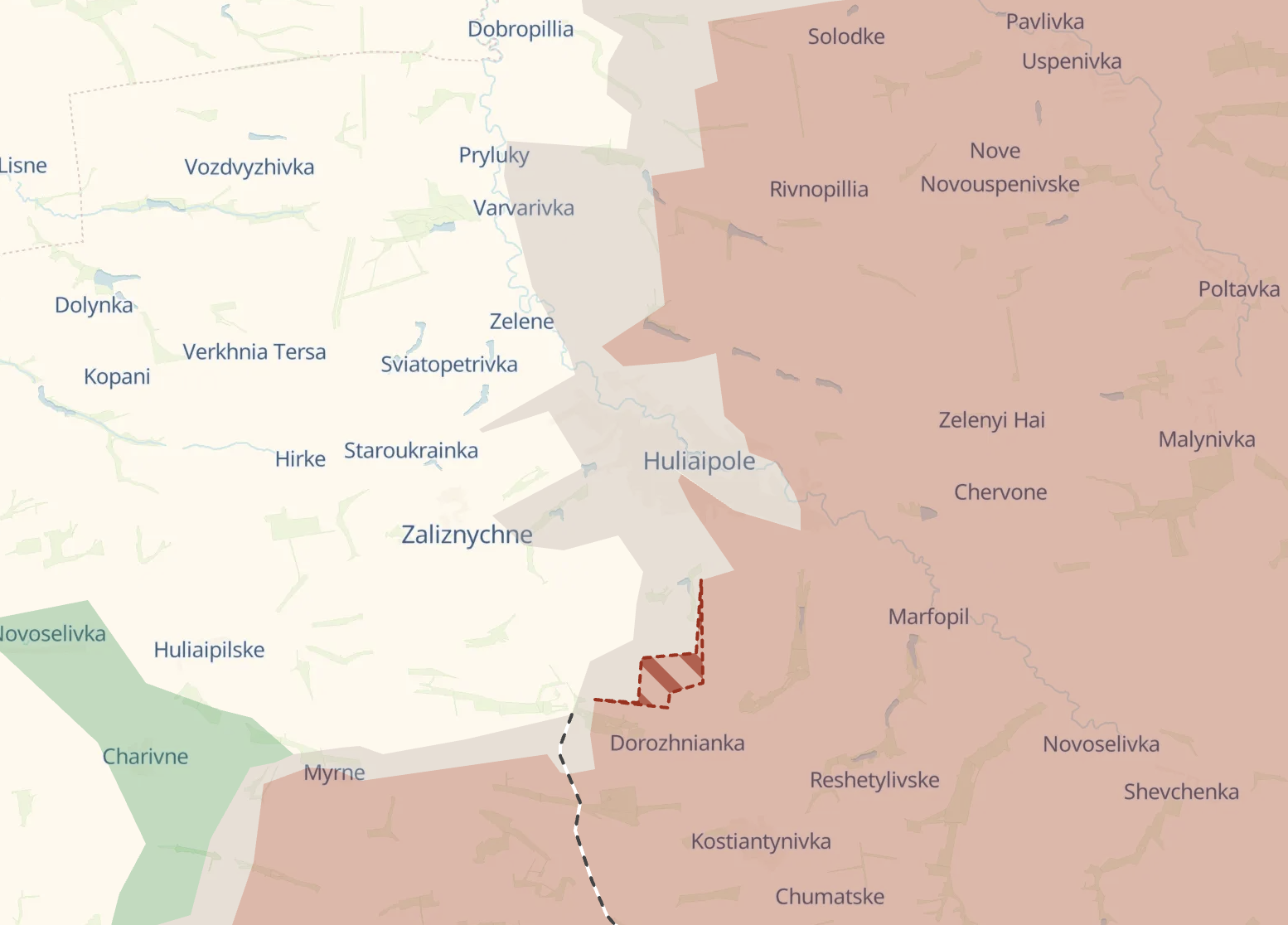 Також повідомляється про просування росіян у районі Дорожнянки на південь від Гуляйполя.