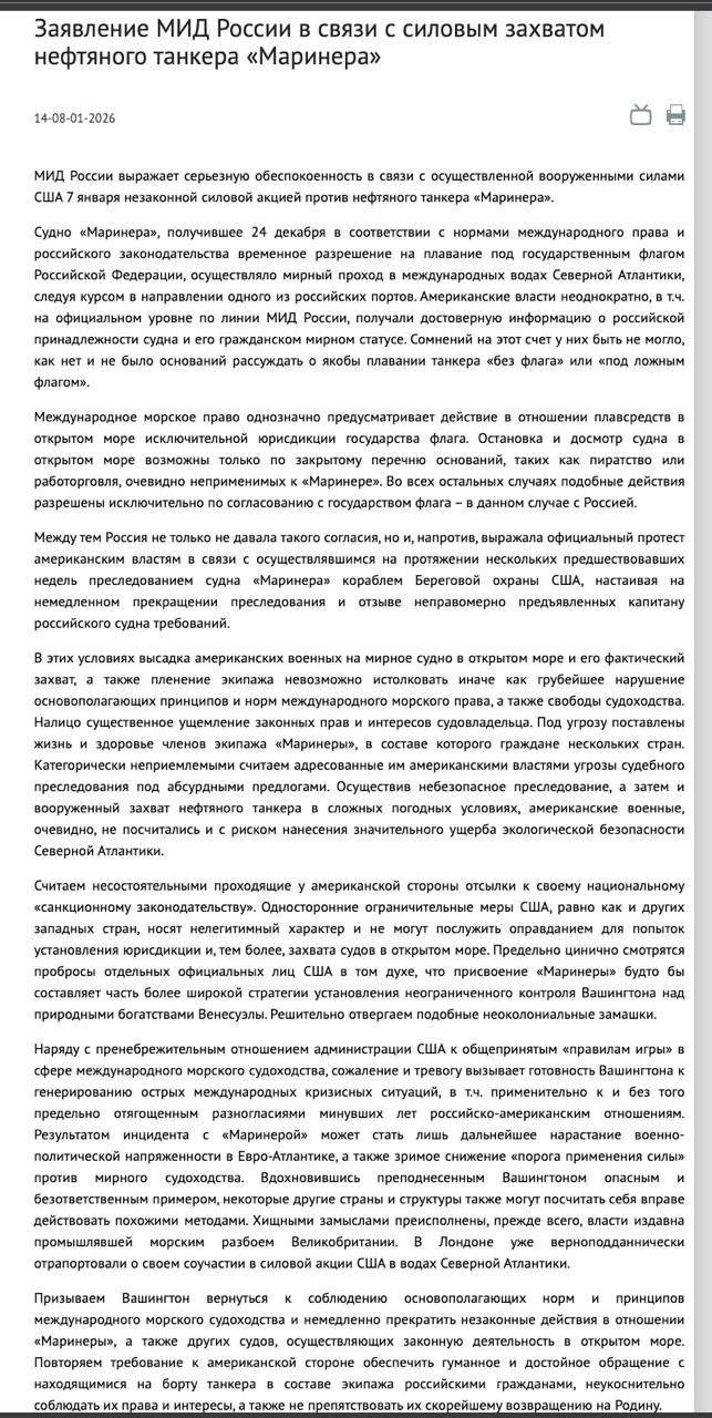 Москва заявила, що захоплення американськими військовими танкера Marinera, який уникав американського флоту під російським прапором після спроби завантажитися у Венесуелі, може посилити розбіжності останніх років між нею та Вашингтоном.
